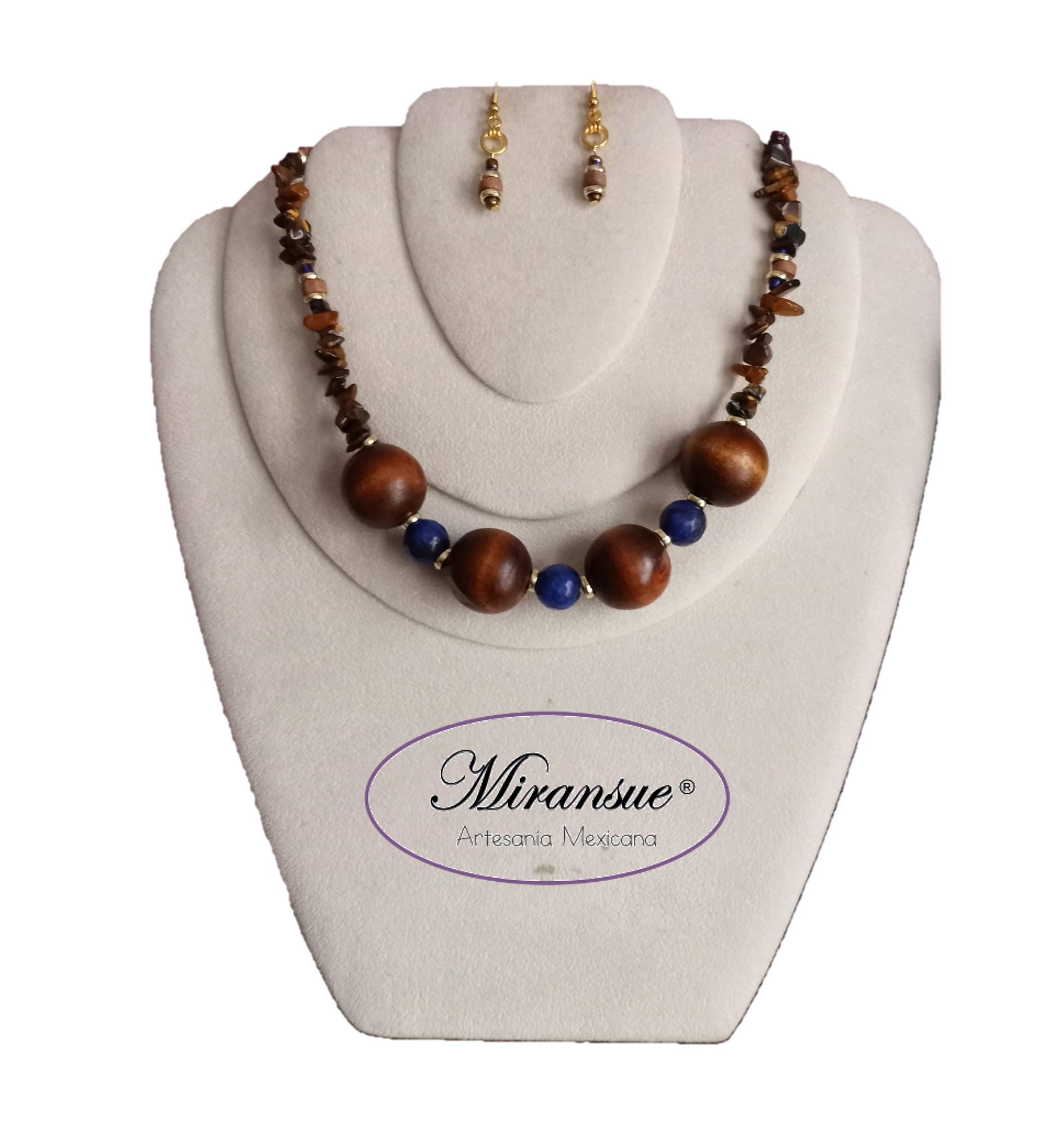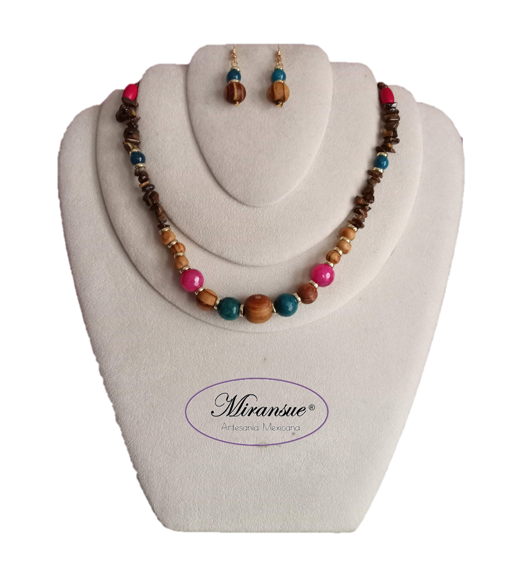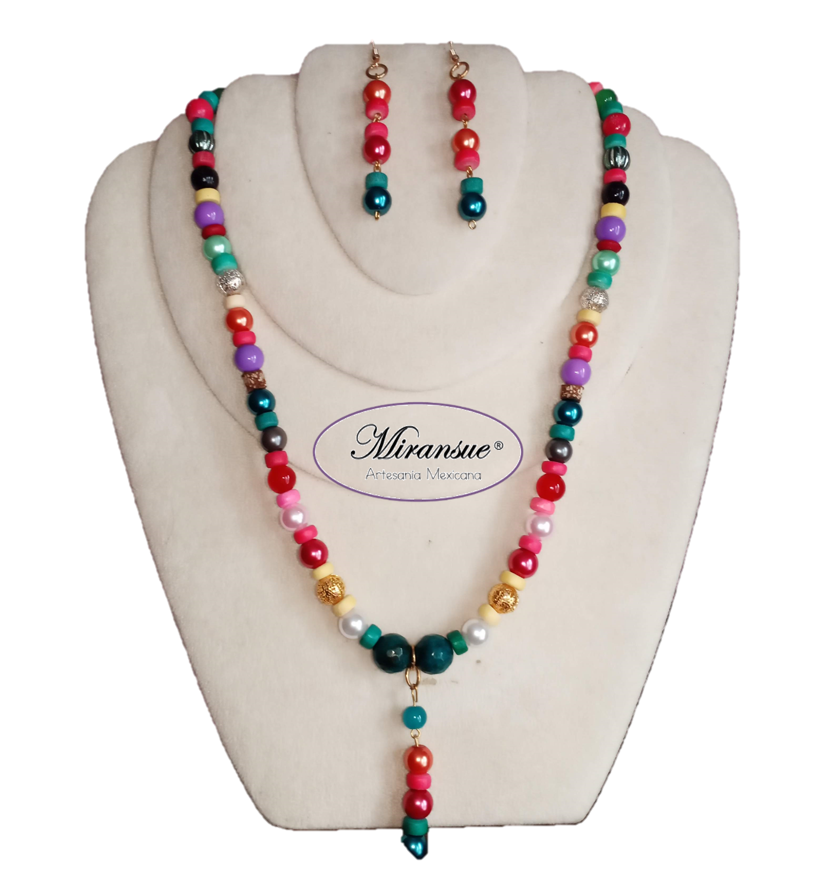 Collar Multicolor Con Ágata Y Diferentes Materiales. Incluye aretes.