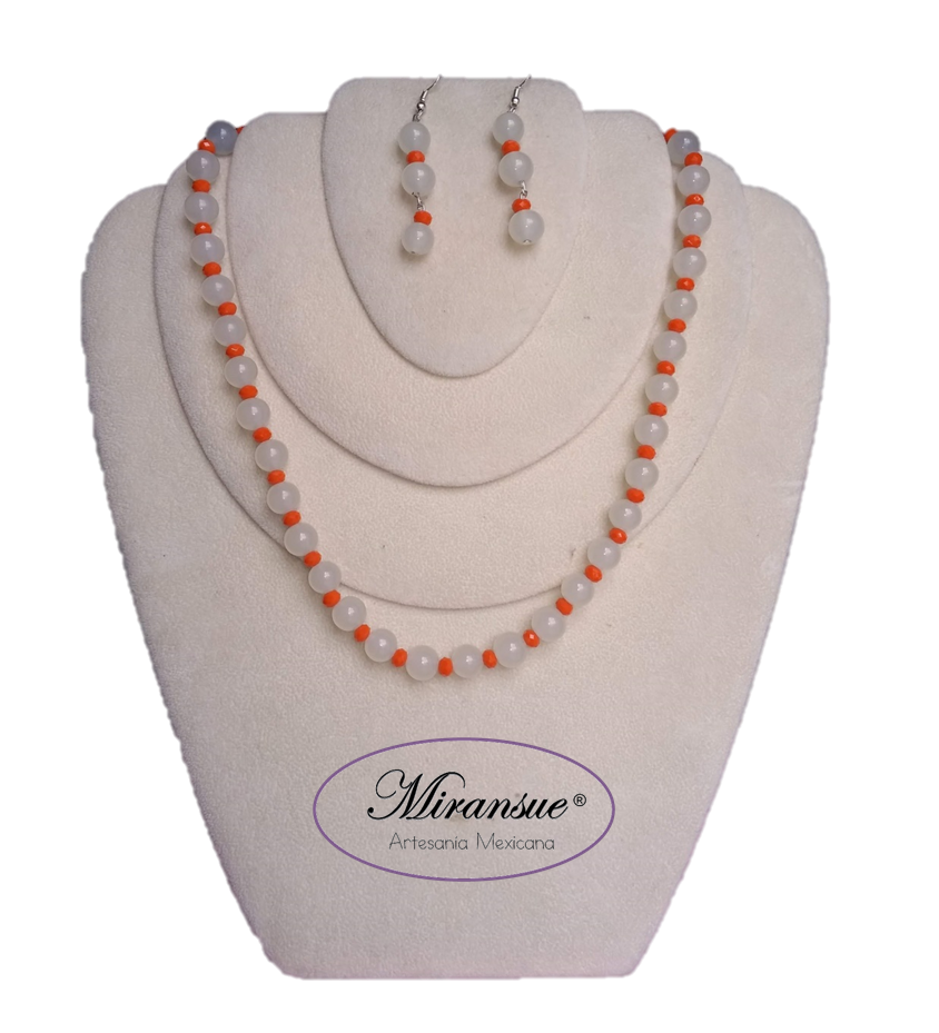 Hermoso juego de collar y aretes en turquesa con cristal blanco