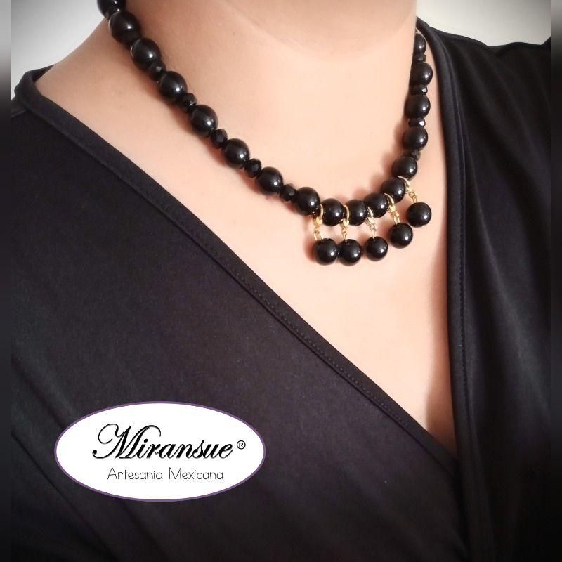 Hermoso juego de collar y aretes estilo corto con colgantes elaborado con perlas de vidrio y metal.