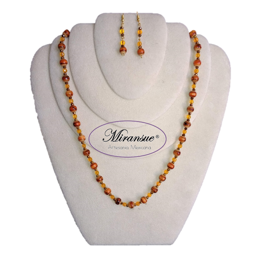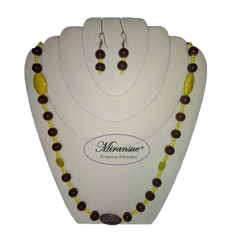 Sé el primero en valorar “Collar y aretes cristal tornasol y piedra de río.”