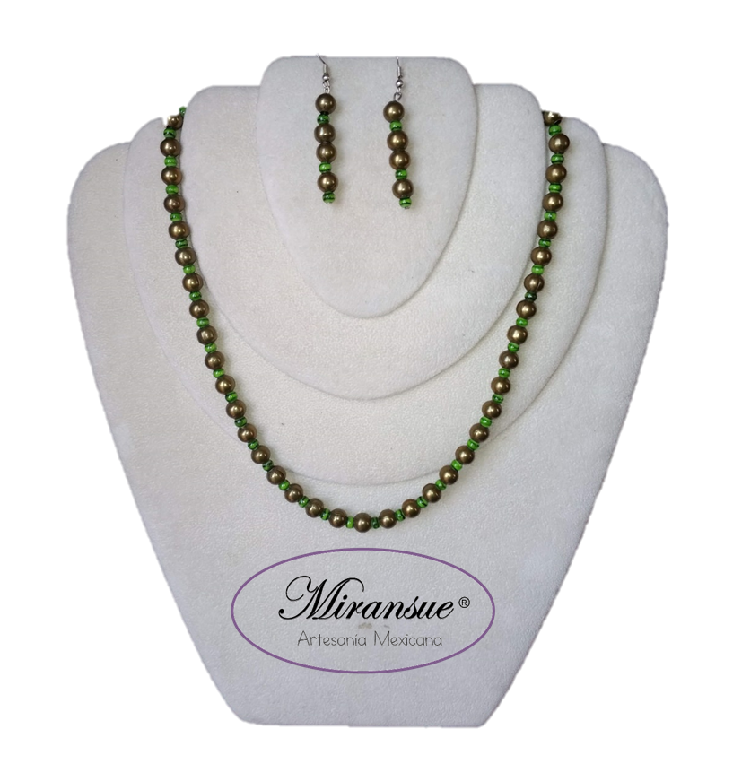 Hermoso juego de Collar y aretes cristal tornasol y piedra de río.